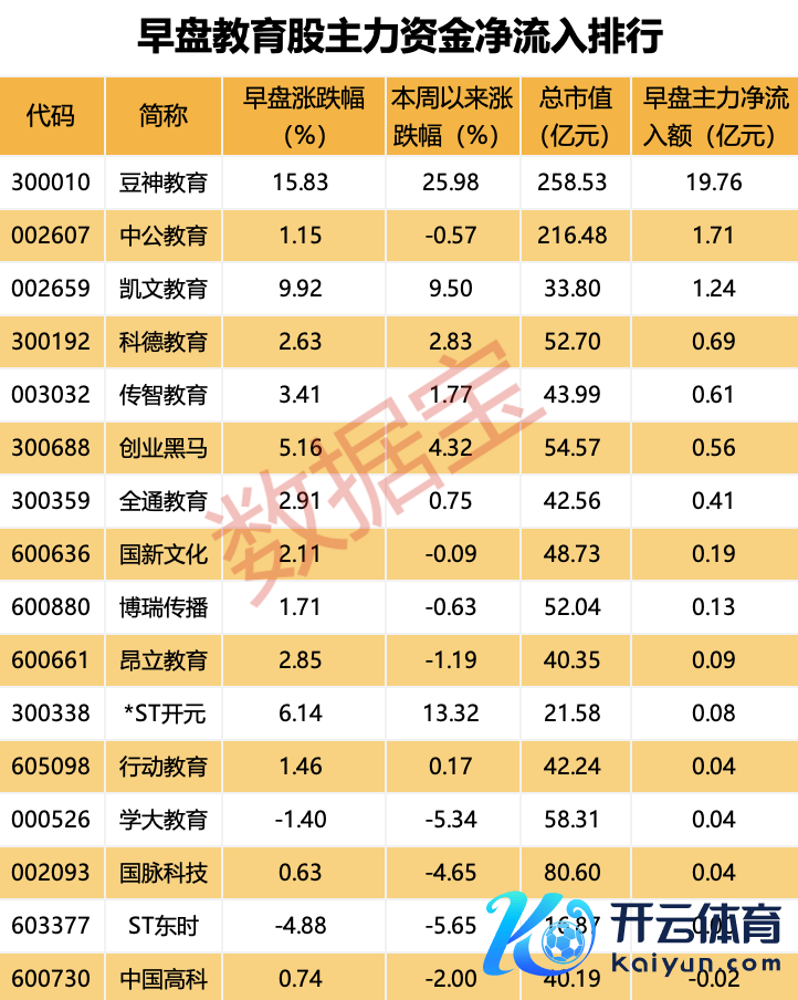 早盘,讲明注解板块领涨两市,行业指数盘中一度上升超7%,收盘涨4.84%。豆神讲明注解盘中涨停,收盘涨15.83%,早盘主力资金净流入19.76亿元。凯文讲明注解涨停,*ST开元、创业黑马涨幅居前,均在5%以上。