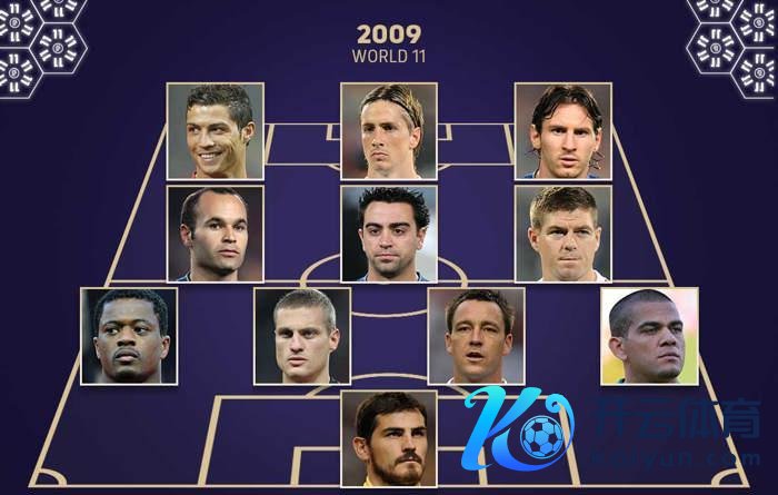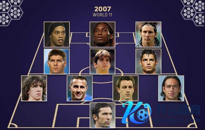 门将:卡西利亚斯(西班牙);后卫:普约尔(西班牙)、费迪南德(英格兰)、特里(英格兰)、拉莫斯(西班牙);中场:卡卡(巴西)、哈维(西班牙)、杰拉德(英格兰);时尚:C罗(葡萄牙)、托雷斯(西班牙)、梅西(阿根廷)