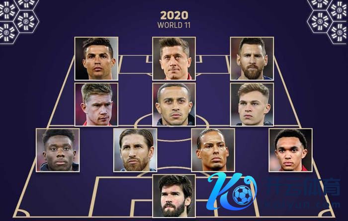 门将:阿利森(巴西);后卫:阿方索-戴维斯(加拿大)、拉莫斯(西班牙)、范迪克(荷兰)、阿诺德(英格兰);中场:德布劳内(比利时)、蒂亚戈(西班牙)、基米希(德国);时尚:C罗(葡萄牙)、莱万多夫斯基(波兰)、梅西(阿根廷)