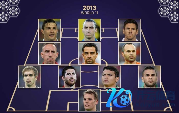 门将:诺伊尔(德国);后卫:拉姆(德国)、拉莫斯(西班牙)、蒂亚戈-席尔瓦(巴西)、阿尔维斯(巴西);中场:里贝里(法国)、哈维(西班牙)、伊涅斯塔(西班牙);时尚:C罗(葡萄牙)、伊布拉希莫维奇(瑞典)、梅西(阿根廷)
