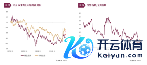 2)港股性价比更高。港股现在的订价明显过时于A股。一是10月份以来,港股大幅跑输A股约15个百分点。二是恒生指数刻下估值依然偏低,PE分位数仅为20%,股息率接近4.0%。三是恒生指数/中证全A的估值折价创出历史新低,不到全A的50%。