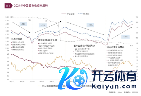 2024年中国股市也迎来回转。其中,沪深300涨幅约15%,恒生指数涨幅略高,约为17%,举座向好。节律上,阛阓依然曲折重重,举座上延续了当年“买预期,卖试验”的交往,波动依然相对较大。总体上,2024年中国股市的收益大部分开端于估值开垦。