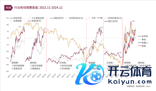 1)当年两年阛阓的轮动特征:顺周期→题材股→红利股。复盘2022年11月-2024年11月,顺周期、题材股和红利股明显跑赢的行情分手有3段、2段和2段,但拉长看,红利举座上明显跑赢另外两类。