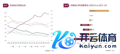 核心原因为:本身居品升级+出口多元化。一是分居品看,2017-2024年,中高端居品增长较快,其中车辆、航空器、船舶及输送开垦增长幅度为176%,机电、音响开垦及零件增长幅度为51%。比较之下,管事密集型居品增长则较慢,以纺织和鞋帽为例,分手增长仅15%和13%。二是从出口区域看,2017-2024年,份额增多主要来自东盟、俄罗斯、墨西哥、巴西、沙出奇,分手增长3.5、1.3、0.9、0.7和0.5个百分点,而份额下降主要来自好意思国、欧盟、日本等,分手下降5.4、3.1和2.2个百分点。